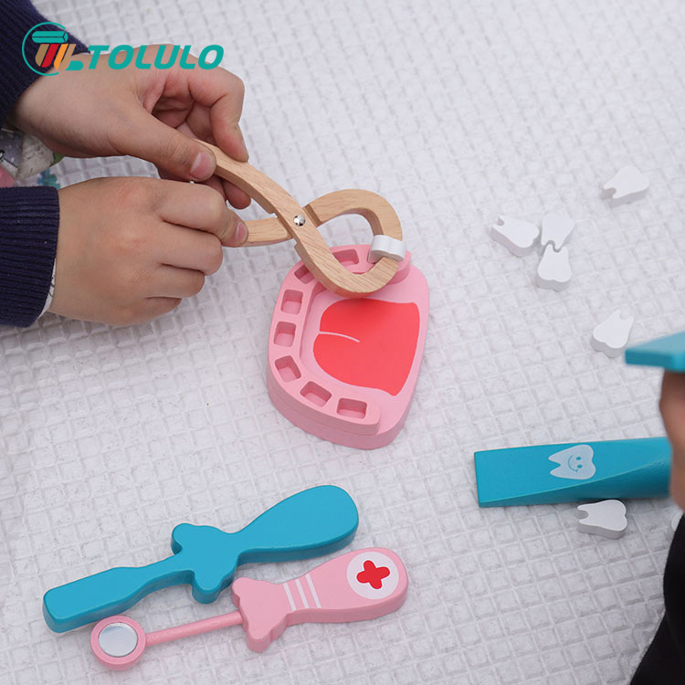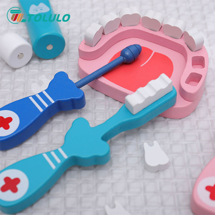 Jucăriile Doctor Kits includ 1 periuță de dinți, 1 oglindă orală, 1 tije pentru dinți cu sondă, 1 clește, 1 pastă de dinți, 1 proteză dentară care are o pungă colorată de depozitat, de asemenea, punga colorată ar putea face modelele dvs.